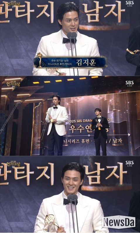뉴스다 김지연 기자 | 배우 김지훈이 ‘2025 SBS 연기대상’에서 우수연기상을 수상하며 한 해 동안 열심히 내달려온 활약의 결실을 맺었다.