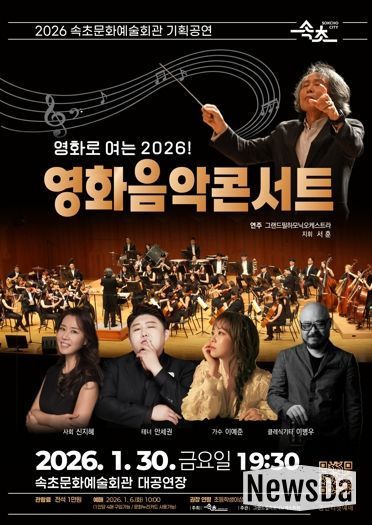뉴스다 최광묵 기자 | 속초시가 2026년 새해를 맞아 1월 30일 오후 7시 30분, 속초문화예술회관 대공연장에서 ‘영화로 여는 2026! 영화음악콘서트’를 개최한다.