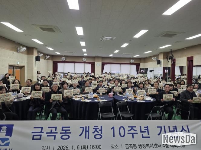 뉴스다 최광묵 기자 | 2026년 개청 10주년을 맞은 권선구 금곡동은 지난 6일 지역구 의원과 주민 등 100여 명이 참석한 가운데 주민자치회 및 통장협의회와 함께 10주년 기념행사를 개최했다.