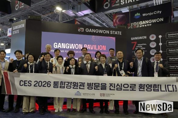 뉴스다 최광묵 기자 | 세계 최대 IT·가전 전시회인 ‘CES 2026’이 열리고 있는 미국 라스베이거스에서 국회 방문단이 통합강원관을 찾아, 강원 기업들의 혁신 기술이 국회 관계자들의 주목을 받았다.