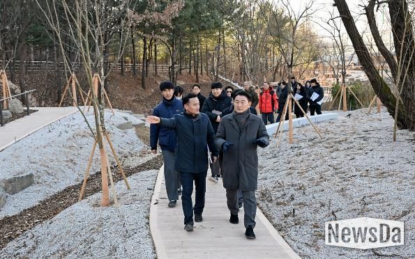 뉴스다 최광묵 기자 | 의정부시는 2026년 병오년 새해를 맞아 1월 8일 녹지 인프라 확충을 위한 주요 사업 대상지를 현장 점검했다. 점검 대상지는 ▲장암동 실외정원 ▲용현산업단지 완충녹지 산책로 및 가로숲길 조성 사업지 ▲민락동 감성쉼터 등이다. 이번 점검은 도심 속 쉼터와 실외정원 확충, 안전한 보행환경 조성, 산림 명소 발굴 등 녹지 인프라 조성 사업의 추진 현황을 점검하고, 시민들이 일상에서 녹지 공간을 보다 쉽게 이용할 수 있도록 추진 중인 ‘도시숲 프로젝트’의 사업 방향과 현장 여건을 확인하기 위해 진행됐다.