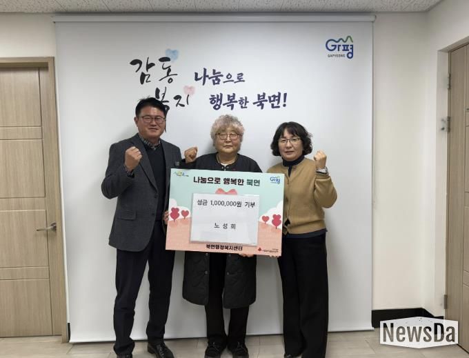 뉴스다 최광묵 기자 | 가평군 북면 지역사회보장협의체 노성희 위원장은 최근 행정복지센터를 방문해 어려운 이웃들을 위해 성금 100만원을 기탁했다.