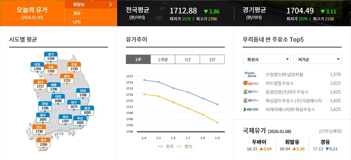 ▲화성시 휘발류 제일 싼 주유소 1579원 오일필드(주)남양지점