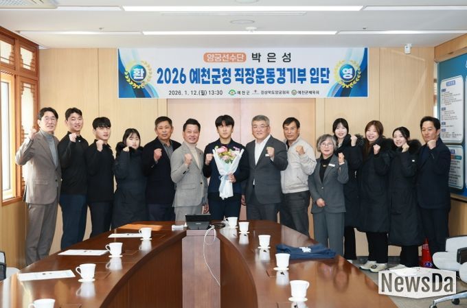 뉴스다 류대현 기자 | 예천군은 2026년 예천군청 양궁선수단의 새로운 식구로 박은성 선수가 합류하며, 12일 예천군청 군수실에서 입단식을 개최했다고 밝혔다.