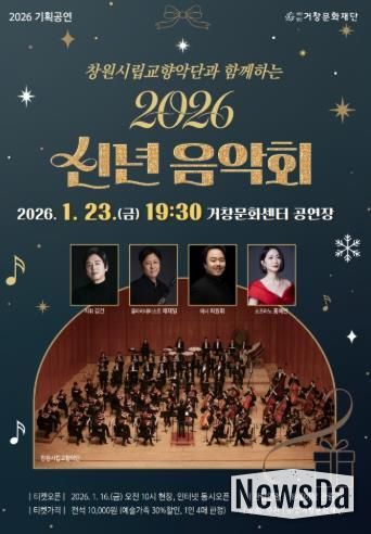 뉴스다 최광묵 기자 | (재)거창문화재단은 오는 23일 19시 30분에 거창문화센터 공연장에서 창원시립교향악단과 함께하는 새해맞이 ‘2026 신년음악회’를 개최한다.