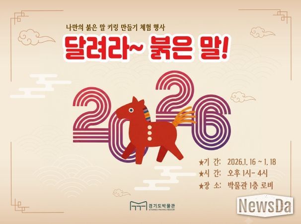 뉴스다 최광묵 기자 | 경기문화재단 경기도박물관(관장직무대행 박본수)은 병오년 새해를 맞아 관람객을 위한 체험형 교육행사 〈달려라~ 붉은 말!〉을 1월 16일부터 18일까지 3일간 박물관 로비에서 운영한다.