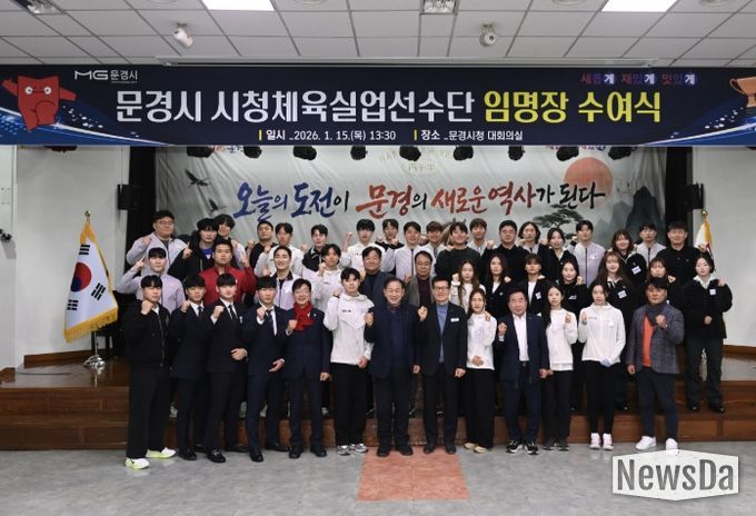 뉴스다 류대현 기자 | 문경시청 실업선수단 신규 선수 임명장 수여식을 15일 시청 대회의실에서 개최하며 새로운 도약을 알렸다.