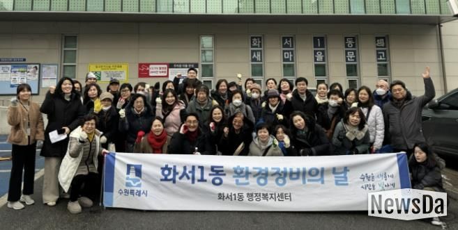 뉴스다 최광묵 기자 | 수원시 팔달구 화서1동은 지난 15일, 통장협의회 등 단체원 및 주민들과 함께 2026년 설맞이 관내 환경정비를 실시했다고 밝혔다.