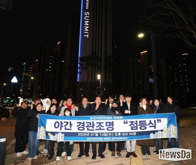 이번 점등식은 기존 옥탑부 조명을 보완해 새롭게 설치한 ‘라인 경관조명’의 본격적인 가동을 알리는 행사로, 아파트 외벽을 따라 조성된 경관조명이 점등되며 단지 전반의 야간 경관이 한층 밝고 쾌적하게 개선됐다.