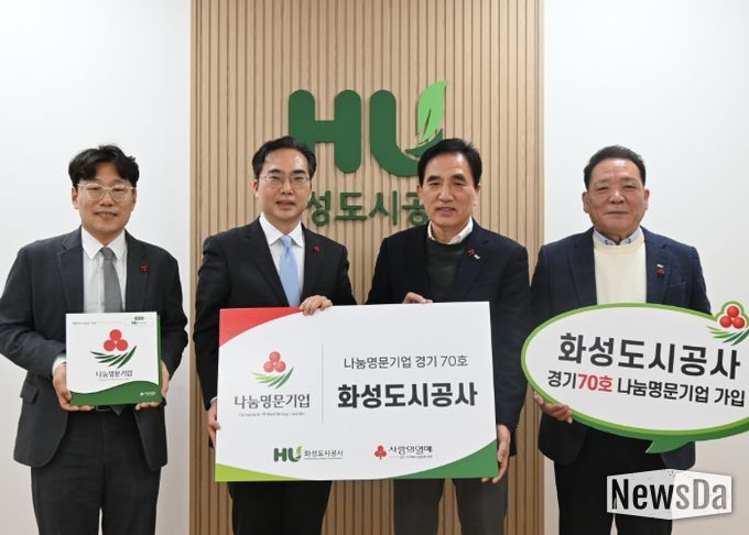 뉴스다 최광묵 기자 | 화성도시공사가 사랑의열매 고액 기부 기업 모임인 ‘나눔명문기업’ 경기 70호로 이름을 올렸다. 단발성 기부가 아닌, 노사가 합동으로 오랜 시간 이어온 지역사회 나눔의 기록이 하나의 결실로 이어졌다는 점에서 의미가 남다르다.