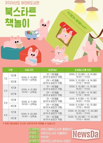 뉴스다 최광묵 기자 | 이천시 어린이도서관이 2026년 영유아와 양육자를 위한 ‘북스타트 책놀이’ 프로그램을 운영한다.