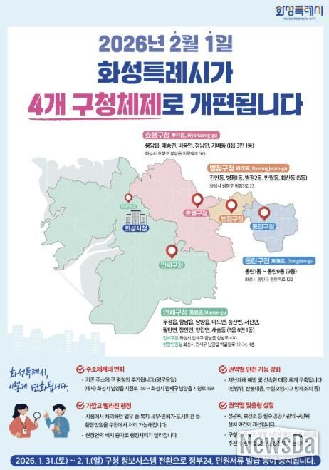 뉴스다 최광묵 기자 | 4개 일반구청 개청이라는 행정체계 대전환이 2주 앞으로 다가온 가운데 화성특례시가 막바지 개청 준비에 박차를 가하고 있다.