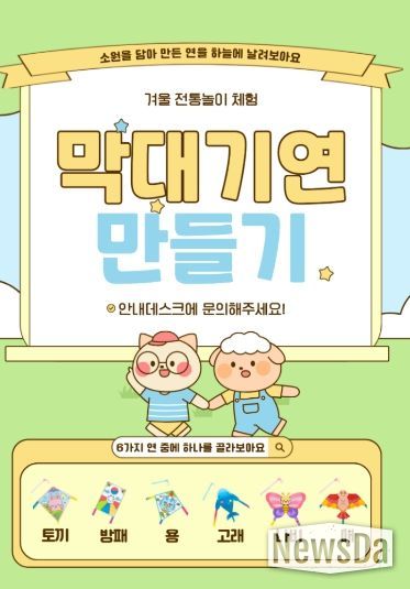 전시에서는 연의 유래와 역사, 전통 연에 담긴 다양한 상징과 뜻을 살펴볼 수 있으며, 겨울과 설날이라는 계절적 분위기에 맞춰 전통 세시풍속을 친근하게 이해할 수 있도록 구성했다.