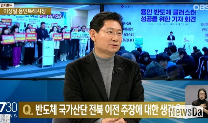 뉴스다 최광묵 기자 | 이상일 용인특례시장은 20일 저녁 OBS ‘뉴스 730’에 출연해 반도체 국가산단 지방이전에 대해 “새만금에는 새만금에 맞는 신규 투자를 하는 게 옳다. 용인 반도체 국가산단을 국가전략산업의 미래 경쟁력을 키우는 관점에서 봤으면 한다”고 했다.