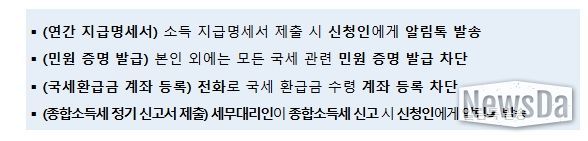 이 밖에도 명의도용으로 인한 피해가 예상되는 국세행정 업무에 대해 다음과 같은 서비스를 시행한다.
