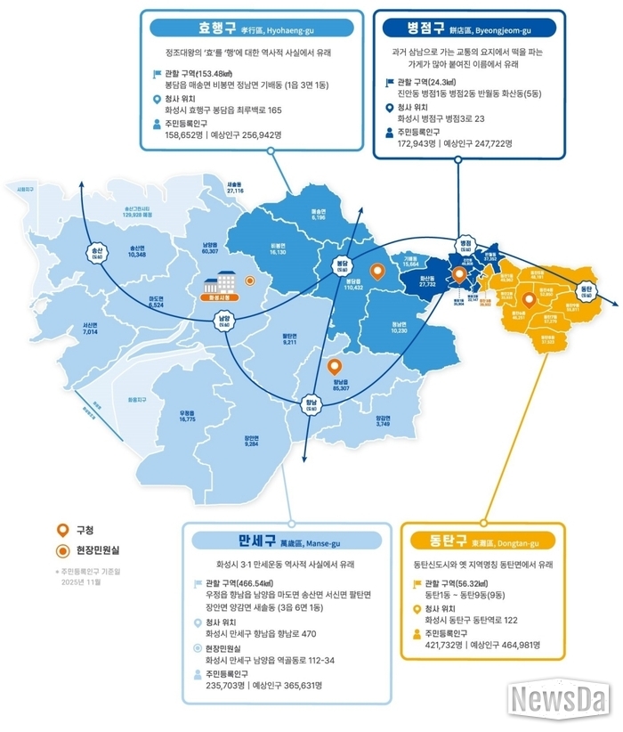 ▲2026년 2월 1일 개청하는 화성특례시 4개 구청(사진제공=화성특례시)