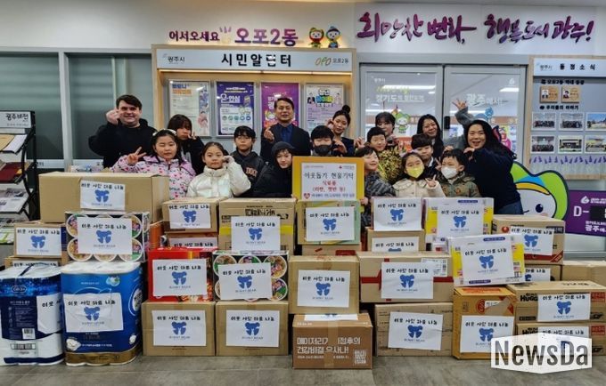 뉴스다 최광묵 기자 | 광주시 양벌동에 위치한 버니베어 전인교육학원 학생들은 27일 오포2동 행정복지센터를 방문해 주변의 어려운 이웃을 위한 식료품을 전달했다.