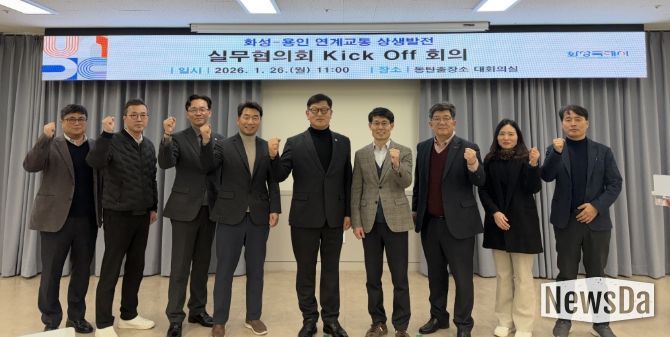 뉴스다 최광묵 기자 | 화성특례시와 용인특례시는 26일 동탄출장소 대회의실에서 ‘화성–용인 연계교통 상생발전 실무협의회’ 킥오프(Kick-off) 회의를 개최하고, 양 도시 간 연계교통 현안에 대한 본격적인 공동 논의에 착수했다.