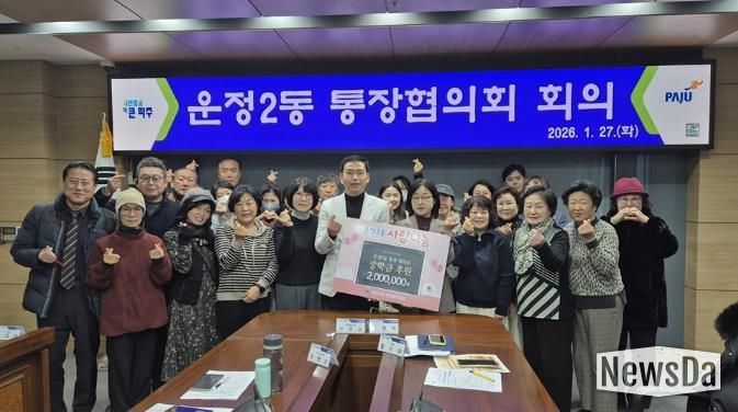 뉴스다 최광묵 기자 | 파주시 운정2동은 지난 27일, 운정2동 통장협의회가 관내 저소득 및 취약계층 청소년들을 위해 장학금 200만 원을 기탁한다고 밝혔다.