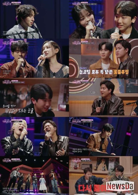 이어진 코너에서는 ‘남녀 듀엣’의 맞대결이 펼쳐졌다. 무무팀에서는 재소환 요청이 쇄도했던 임지성×송지우의 하울&제이의 ‘사랑인가요’를 선곡했다. 두 사람은 한층 자연스러워진 눈빛 교환과 풋풋한 감성으로 무대를 채웠고, 이를 지켜보던 출연진들은 “꿀 떨어진다”라며 들뜬 반응을 보여 웃음을 자아냈다.