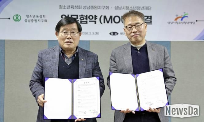 뉴스다 최광묵 기자 | 성남시청소년청년재단은 2월 3일 청소년육성회 성남중원지구회와 지역 청소년의 건강한 성장과 복지 증진을 위한 업무협약을 체결했다.