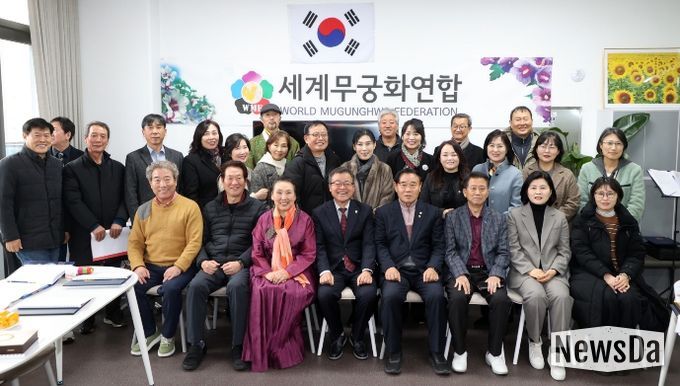 뉴스다 최광묵 기자 | 수원특례시의회 이재식 의장은 2월 4일, 세계무궁화연합 사무국에서 열린 세계무궁화연합(W-M-F) 제2회 정기총회에 참석해, 무궁화 보존과 문화 확산을 위한 시민 활동에 공감하고 연대해 온 데 대한 뜻으로 감사패를 받았다.
