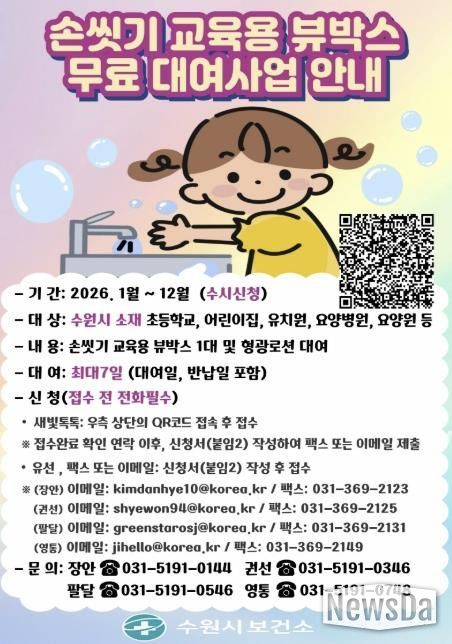 뉴스다 최광묵 기자 | 수원시보건소가 교육용 손씻기 체험 기구인 ‘뷰박스(View-box)’를 무료로 대여한다.