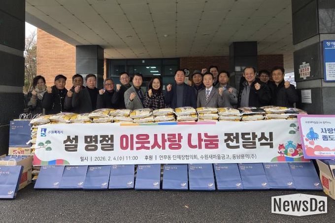 뉴스다 최광묵 기자 | 수원시 장안구 연무동 행정복지센터는 지난 4일, 설 명절을 맞아 관내 어려운 이웃을 위한 나눔 전달식을 개최했다.