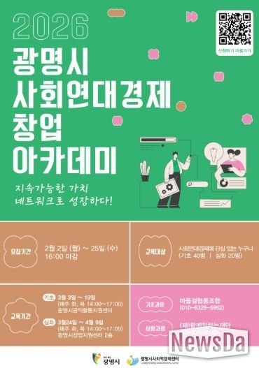 뉴스다 최광묵 기자 | 광명시가 ‘2026년 광명시 사회연대경제 창업 아카데미’ 수강생을 오는 25일까지 모집한다.