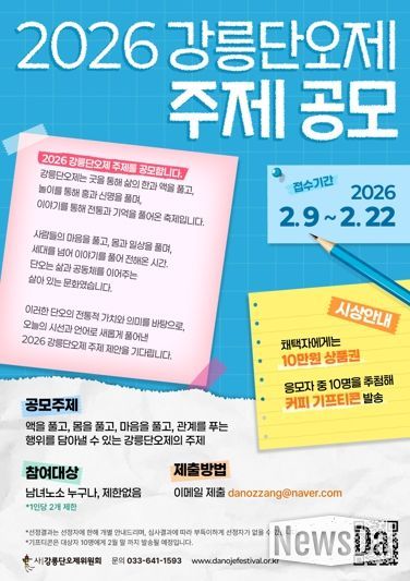 뉴스다 최광묵 기자 | (사)강릉단오제위원회는 2026 강릉단오제 주제 공모를 오는 2월 9일부터 2월 22일까지 진행한다.