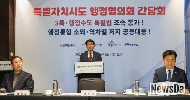 뉴스다 최광묵 기자 | 대한민국특별자치시도 행정협의회(대표회장 강원특별자치도지사 김진태) 시‧도지사는 2026년 2월 8일 서울 콘래드 호텔에서 긴급 회동, 간담회를 개최했다.