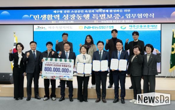 제주도는 10일 NH농협은행 제주본부에서 NH농협은행 제주본부, 제주신용보증재단과 ‘민생활력 성장동행 특별보증’ 업무협약을 체결했다.