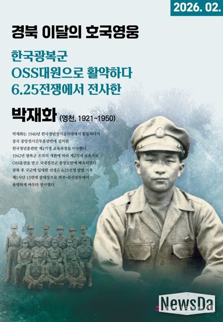 뉴스다 최광묵 기자 | 경상북도호국보훈재단은 2026년 ‘경북 이달의 호국영웅’ 2월의 주인공으로 영천 출신 박재화 선생(朴載華, 1921~1950)을 선정했다고 밝혔다.