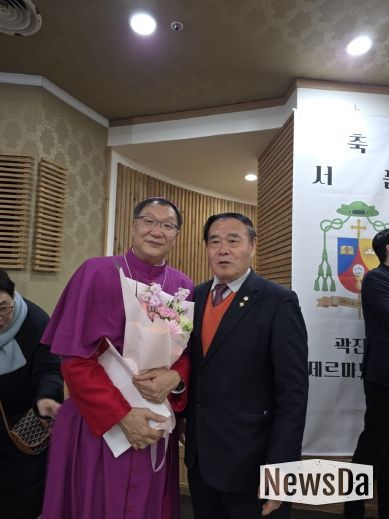 뉴스다 최광묵 기자 | 수원특례시의회 이재식 의장은 2월 11일(수) 오후 2시, 장안구 정자동 주교좌성당에서 열린 천주교 수원교구 곽진상 제르마노 주교 서품식에 참석해 신임 보좌주교의 서품을 축하했다.