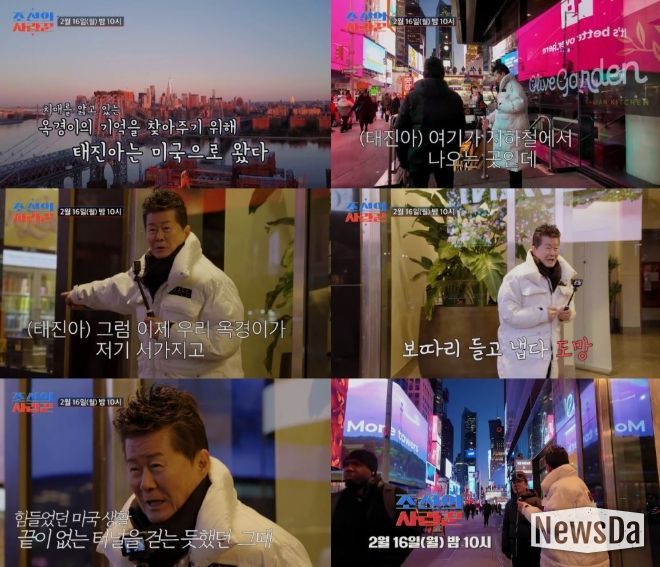 2월 16일(월) 방송될 '조선의 사랑꾼' 선공개 영상에서는 설 특집으로 2년 전 시청자의 심금을 울린 태진아가 치매 투병 중인 아내 옥경이의 근황과 함께 안방 1열을 찾아온다. 태진아는 옥경이에게 보여줄 '회상 치료' 영상을 촬영하기 위해, 두 사람의 특별한 기억이 담겨있는 미국의 타임스퀘어에 25년 만에 방문했다.