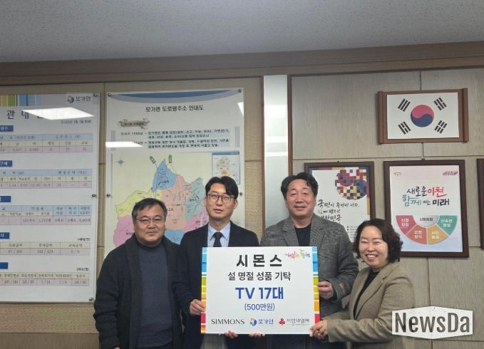 뉴스다 최광묵 기자 | 지난 11일 ㈜시몬스는 모가면 취약계층을 위한 삼성TV 17대(500만원 상당)를 기탁하여 지역사회와의 상생을 위한 이웃사랑 나눔 활동을 실천했다.