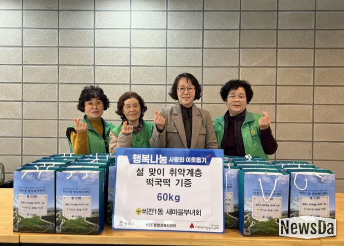 뉴스다 최광묵 기자 | 평택시 비전1동 새마을 부녀회는 지난 11일, 설 명절을 앞두고 관내 취약계층을 위해 떡국떡 60㎏을 후원했다.