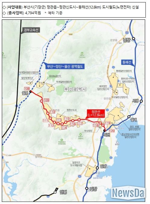 뉴스다 최광묵 기자 | 국토교통부는 2월 12일 동해선 삼척-강릉 철도 고속화 사업과 부산도시철도 정관선 건설사업이 사업 타당성을 확보하여 예비타당성조사를 통과했다고 밝혔다.