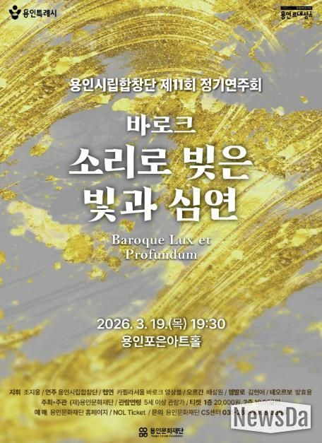 뉴스다 최광묵 기자 | 용인문화재단은 오는 3월 19일 오후 7시 30분, 포은아트홀에서 용인시립합창단 제11회 정기연주회 '바로크 – 소리로 빚은 빛과 심연'을 개최한다.