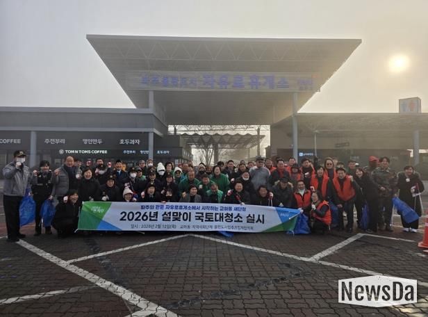 뉴스다 최광묵 기자 | 파주시 교하동은 12일 설 명절을 앞두고 귀성객들이 가장 먼저 마주하는 파주의 관문 자유로휴게소 일원을 중심으로 ‘우리동네 새단장 설맞이 대청소’를 실시했다.
