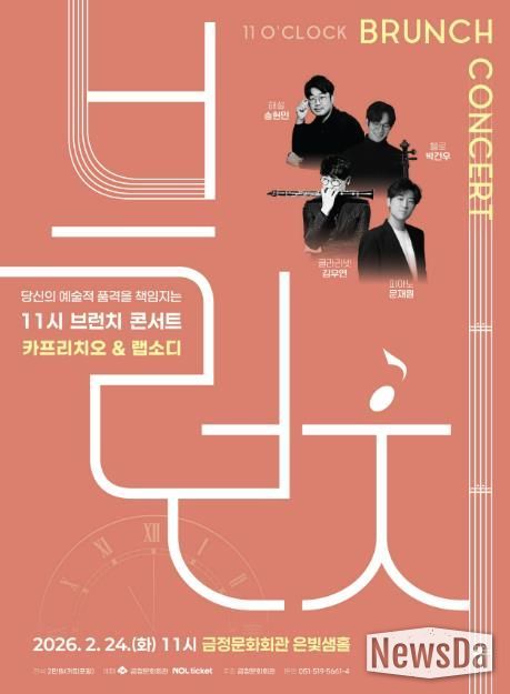 뉴스다 최광묵 기자 | 부산 금정구 금정문화회관 은빛샘홀에서 펼쳐질 2026년 2월 브런치 콘서트는 ‘카프리치오 & 랩소디’란 특별한 주제로 관객들을 찾아온다.