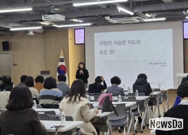 이번 집합교육에는 관내 어린이 급식시설(어린이집, 유치원, 지역아동센터) 40개소의 원장과 센터장이 참여했으며, 바른 식습관연구소 김아람 강사가 ‘어린이 식습관 지도법’을 주제로 강의를 진행했다.
