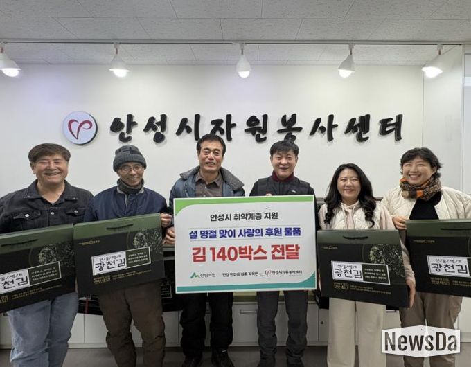 뉴스다 최광묵 기자 | 안성시자원봉사센터는 지난 12일, 안성한마음대추작목반으로부터 설 명절을 맞아 관내 어려운 이웃을 위한 김 140세트를 전달받았다.