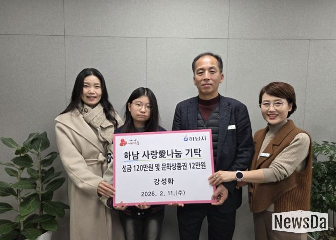 뉴스다 최광묵 기자 | 하남시는 지난 11일, 강성화 씨 가족이 지역 내 취약계층 아동 및 청소년을 돕기 위해 ‘하남 사랑愛나눔’ 성금으로 120만원 및 문화상품권 12만원을 하남시에 기탁했다고 밝혔다.