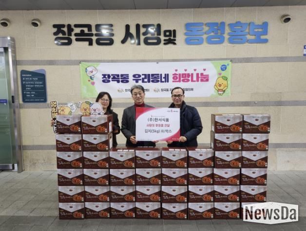 뉴스다 최광묵 기자 | ㈜한서식품은 설 명절을 맞아 지역 내 어려운 이웃을 위해 한서김치 5kg 40상자를 장곡동 행정복지센터에 전달했다.