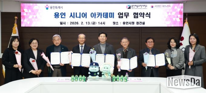 뉴스다 최광묵 기자 | 용인특례시는 13일 시청 접견실에서 용인예술과학대학교, (사)대한노인회 용인시 처인·기흥·수지구지회와 ‘용인시니어아카데미 운영을 위한 업무 협약’을 맺었다.