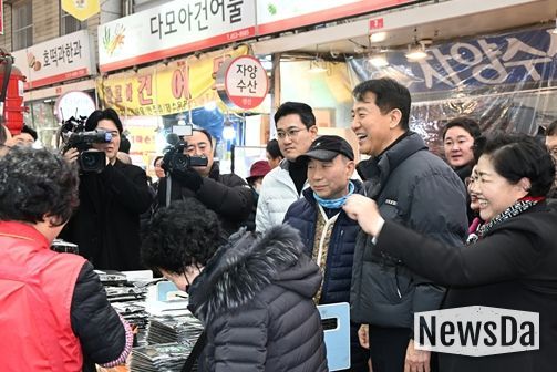 이날 오 시장은 온누리상품권으로 고기와 떡, 식혜 등을 구매하며 점포 상인들과 시민들의 목소리를 들었다.