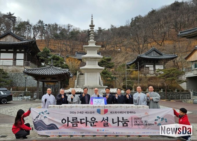 뉴스다 최광묵 기자 | 양주시 장흥면은 최근 한국불교태고종 청련사에서 구세군과 한국불교태고종, 태고복지재단과 함께 ‘2026년 아름다운 설 나눔 키트 전달식’을 개최했다.