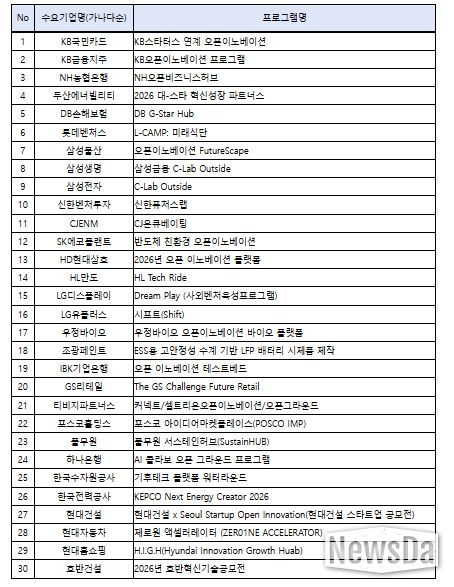 한편, 중기부는 금번 ‘전략과제 해결형’ 외에도, ‘민간 선별·추천형’에서 오픈이노베이션 지원 프로그램 30개를 선정했다. 현대자동차 (제로원), 삼성전자 (C-Lab Outside) 등 오픈이노베이션 역량·실적이 우수한 대기업들이 새롭게 참여했으며, 기업 자체적 오픈이노베이션 프로그램을 통해 선별된 스타트업을 프로그램 운영기업에서 추천시 중기부에서 연계 지원할 예정이다.