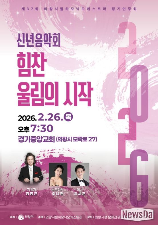 뉴스다 최광묵 기자 | 의왕시가 2월 26일 오후 7시 30분, 경기중앙교회(모락로 27)에서 '제37회 의왕시필하모닉오케스트라 정기연주회'를 개최한다.